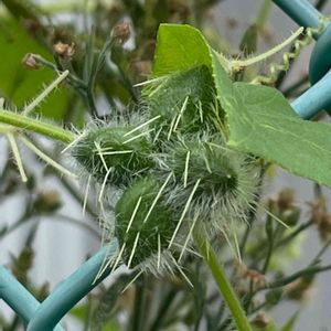 おはようございます👋😃 10月7日に投稿したアレチウリ。一面に広がってる景色を見た時は😱 花の後には、しっかりゴツゴツした実ができて、トゲトゲ😵名前の由来は、トゲのあるキュウリだとか🤭 日本の侵略的外来種ワースト100だそうです😂 今日からまた、孫台風の上陸。しばらくコメント💬閉じます🙏💦💦