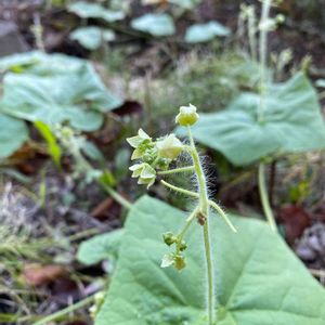 アレチウリ(荒地瓜)。 クズの葉の茂みの中にかわいい花を発見✨っと喜んだのですが… 特定外来生物に指定されていて駆除対象になっているそうです。繁殖力が半端なく他の植物を駆逐してしまうそう💦
