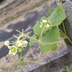 アレチウリ 名のように、手の入らない荒れ地に咲いてた。 黄緑の花だから目立たない。