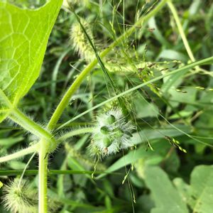 先日upしたアレチウリの果実。こんぺいとうの形に、柔らかい毛で覆われています。見た目では、気づきませんでした。毛の中にトゲらしきものが😱