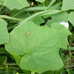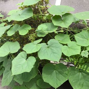 アレチウリ(荒れ地瓜) ウリ科アレチウリ属のつる性の一年草。 北アメリカ原産の帰化植物 雌雄同株 アレチウリのつるが、他の植物にからみつきながら、大きな葉で、河川敷の一画を覆い尽くしていました。 日が短くなる時期に、花が咲くそうです。 土手道からアレチウリの大群落を眺めていると、ゴソゴソ葉っぱの上を動く小動物がいました。のそ~っと茂みに隠れてしまいました。昼寝のじゃまをしてしまったかな~😅