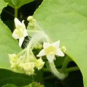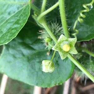 畑への道すがら、ウリ系の蔓に優しい色の花が咲いているのです。
