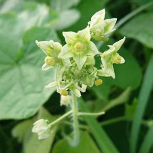 公園にてわんことお散歩🐾 ちっちゃなき緑色のツル性の花をみっけ♪ 図鑑探して 名前がわかりました☺️