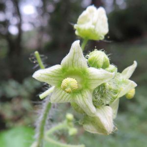 見てこの産毛、もっさもさでしょ😆 ガードレールとかに絡まってわさわさしているツタっぽいのにお花が咲きました 名前分かる方いるのでしょうか? すぐに回答いただきました アレチウリだそうです。たらこ唇さんありがとうございました