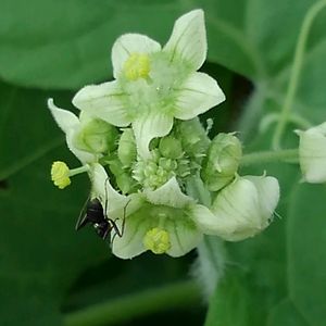 河原の土手で勢力を広げています。 困りものの一つ😥 「アレチウリ」特定外来生物に指定されています。(←雌花ですね)