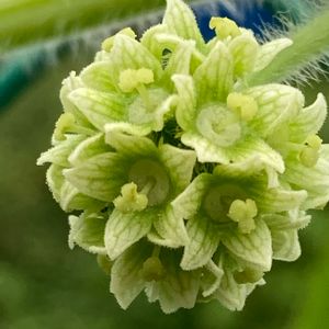 〜💚アレチウリ(荒れ地瓜)💚〜 ウリ科の大型ツル植物の一年生草本。 北米原産の特定外来生物。 川沿い土手に大繁殖🌿🌿🌿 の困ったちゃんだけど😅 ステキなお色で、こんなまん丸お花はつい見惚れちゃう💚 R.5 9/27 撮影