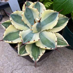 アガベ 吉祥冠錦?orポタトルムスーパークラウン? 我が家の名前不明植物🪴 アガベの吉祥冠錦なのか?ポタトルムスーパークラウンなのか?個人的には吉祥冠錦であって欲しいと思うww名前カッコ良いから(*´∀`*)