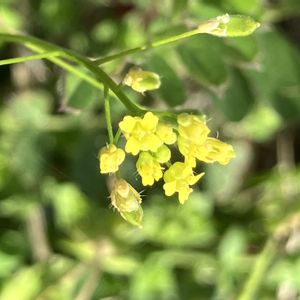 ①②イヌガラシ アブラナ科 しゃがんで撮っていると肩越しにイヌが覗く😣 後で気が付く 名前を知り教えてくれたのか! ③30mほど黄色竹が並ぶ 後ろ側は青いから日焼け? ④⑤アブラナ 菜の花との違いは成長過程の違いと初めて知る 川沿いに咲くのは菜の花で大きくなればアブラナなんだ