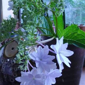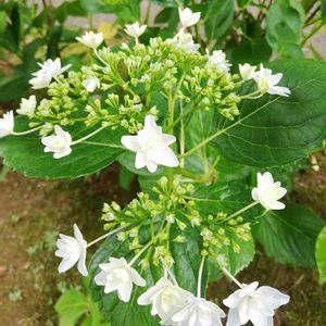 ガクアジサイ・墨田の花火 咲き進んで、ほんのり青味が☺️✨ 今年は賑やかです🎇