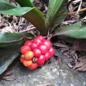 庭に出て終わりのピーマンを取りに行ったら えっ何だ?赤い玉が見えました🤩 鳥🐦が食べて他の地で芽🌱を出したらと妄想🤗