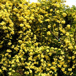 花畑のアーチになってる黄木香薔薇が満開になりました アーチの外側から見ると,黄色い壁の様です🌼🌼🌼 バラのトンネルの南側は,伸び放題の枝もそのままです