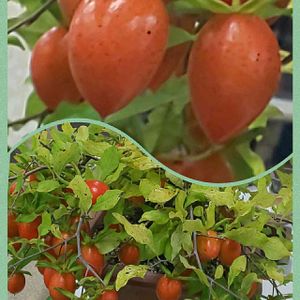 前のpicの実をアップで撮ってみました。 🔍するとミニトマトとか老爺柿とか出てきますが⁉️ 初めて見た実です。