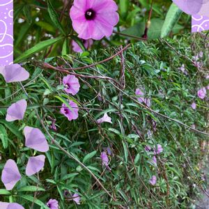 モミジバアサガオ、 かな?🤔 五裂の葉はモミジバヒルガオに似て 花は星朝顔くらい小さくて朝顔のような実もなります。 ジリジリ暑さが増してくるお昼前にはしぼんできます。 朝8時頃、可愛く咲き揃ったお花が見れてラッキーでした🥰