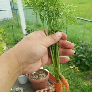 ニンジン収穫!? いや間引きです…(^_^;) 今年初めて植えたからちょいちょい調べながらやってるんだけど、間隔が拳くらいだと書いてたので抜いたら…なんか既にミニニンジンサイズじゃん(-_-;) 抜かなきゃよかったよ~(。>д<) 葉っぱも食べれるらしいけどどーすりゃいいんだろぅ。