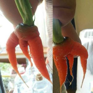 出たぁ~!! ち○○ん人参(笑) 裏もちゃんとお尻っぽいのがポイント♪ なんかちょっとノリノリな感じがまた…(^_^;) うっかり言っちゃって息子でかい声で連呼、ちょっと恥ずかしかった…(*ノ▽ノ)