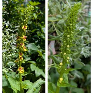 ①オレガノハイライト 暑いのが好きなのか花付きがいいです ②バーバスカム ウエディング キャンドルズ 5月は暑過ぎて咲かなかった、今小さい花だけど咲き始めました 暑さに慣れたのかな?