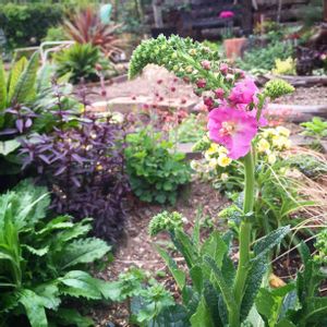 秋冬に猫さんが花壇で穴を掘り続けた結果、種蒔きして育てたバーバスカムで生き残ったのは1つだけ… 頑張れ、バーバスカム‼︎
