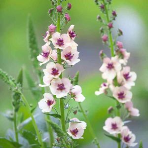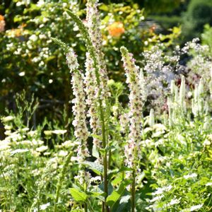 ①バーバスカム・ウエディングキャンドルズ ②♡型のホワイト花壇に咲いています🤍 バーバスカムはまずサザンチャームが咲き、次にポーラサマー、そして今この花が咲いています🤍 株が大きくなり花穂もたくさん上がりました☺️