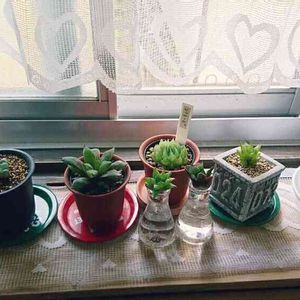 昨日、仕事が早く終わったので棚の多肉たち皆に水あげて放置状態。 さっき娘とお片付けしました。 娘は植物屋さんごっこーって楽しんでました。 そんな朝のひととき、癒されますね。