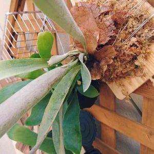 板付したコウモリラン。 白っぽくて細長い葉。 ビカクシダ ビーチーかな?あってる? 新しい胞子葉も少しずつ伸びてるようです。