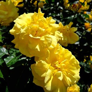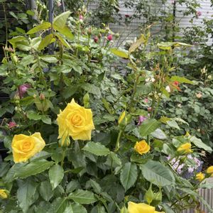 黄色いバラ ①レモン ドゥ ソレイユ フロリバンダ(中輪房咲きで四季咲きバラの系統) 2015年 フランス作出 微香で強健でトゲが少ない ②フリージア フロリバンダ 1973年 ドイツ作出 強香で早咲きの強健種である ③伊豆の踊子(いずのおどりこ) フロリバンダ 2001年 フランス作出 中香で、半剣弁咲きからロゼット咲きへ変化する 🏷️月曜日にビタミンカラー に参加させていただきます。