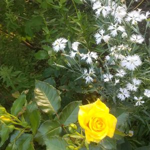 今日のお花 「バラ(黄)」 バラフリージアが咲きはじめました。 一番花は、1輪でしたが、 二番花は、沢山蕾持って来ました。嬉しいです。🤗 今日、庭の黄色のバラが丁度咲きました。 ②今朝は、ほんの少し開いていて、夕方撮影しましたがまだ、こんなに開き方です。 明日には、もっと大きく開くでしょう? ピントズレで、失礼します。🤗 ③白のカワラナデシコ、沢山咲いてくれました。 ウリハムシに蕾、又、沢山食べられています。 ①の写真より、これの方が綺麗なので、見て下さいね。🤗 ④先週、姉から貰って来たスカシユリが、沢山開きました。 ⑤アルストロメリアも一緒に貰いました。