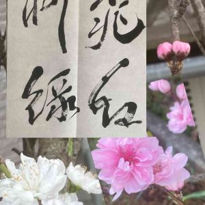 春を書く🤭 [桃紅柳緑] 春の景色の美しさの形容 桃の美しい紅の花と、柳の鮮やかな緑の葉