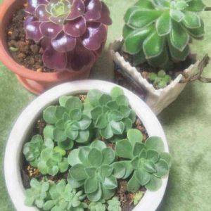 最近買った名前が分からない多肉ちゃん 左 アエオニウム レモネードヽ(*´∀`) ケバケバした触り心地で なかなか見ない感じの子です。 真ん中 シルバーピンク色の 可愛い感じの子 右側 ニクサーナとかそんな名前の エケベリアに似てる気がしてます 残念ながら 手前の3種類の名前が分かりません。 ご存知の方がいらっしゃいましたら 教えてください。