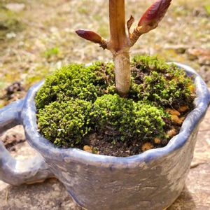 旦那に負けてられないと、私も盆栽作り♪( ´▽`) 盆栽サイズの鉢がなかったので、長男が小学生の頃作ったコップ(?)の底に穴を開けて〰 去年の夏挿木にした紫陽花を入れてみた。 一応苔もその辺から採取して乗せたけど、無い方が良かったかな?(^^;) てか、こんなのでそもそも盆栽になるのかな? コレに盆栽ってタグ付けて投稿したら笑われるかな、、?σ(^_^;) え〜いっ‼︎笑ってください!(≧∀≦)