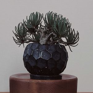 ナナンサス ビッタタス 飛来した折り鶴の群れのよう スクエアとトライアングルの葉を鑑賞するのにサークルが足りないな、と思いオベサを植え込んだらピッタリダス😜 中央の石とも相性が良く、小さなオベサをナデナデするビッタタスの葉も面白い そのうちにオベサの方がでかくなるかな?