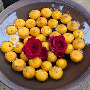 今日のお花「ユズ」(の実)🌿💛 神社の花手水になっていました 斬新なアイディアですよね~🤗💕 🏷日曜ビタミンカラー♪ 🏷素敵な日曜日を✨️ 🏷素敵な出会いに感謝 に参加させていただきます🙇