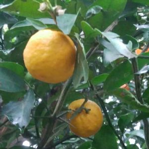 せとか、実が付きだした時に殺虫剤をまいた為、落ちてしまい1つだけ残った実が色づいてきました😄 ゆず、ゆず湯に使う分は 充分ありそうです🤗