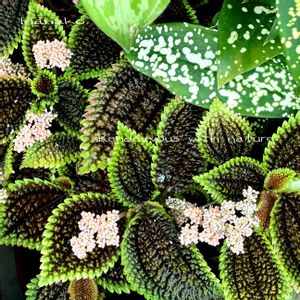 🍀 ピレア・モリス・ムーンバレー🍀 縮緬(ちりめん)状、ブロンズ色、 脈が窪み紫色、縁は明るい緑色、 葉面が凸凹で月の表面のようで あるため、'MoonValley'と いうそうです😊 千歳空港にて🛩