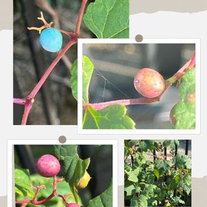 こんにちは😊 今日は動くと汗ばむくらいの日でしたが、明日から急激に気温が下がるようですね。風邪、インフルエンザ、コロナにも気を付けねば! 野葡萄の綺麗に色づく実がみたくて、盆栽市で買ってきた苗。楽しみにしていたのに、ほとんど実が落ちてしまい、残ったのは12個でした😢でも、綺麗に色づいてきました🤗