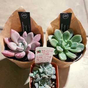 また八ヶ岳セレクションを見つけてお迎え😆✨ 手前左のセンペルみたいな子はエケベリアだそうです😳‼️ センペル好きの私にはたまらないフォルム😍ちょっとモケモケもしています🎶 そして左上の白いモケモケさん👀 ハオルチー(銀月?) 欲しかった銀月にそっくりでお迎え💕 本当美しい😭✨ この中で1番高かった🤣 そしてエキゾチカは一度お迎えしましたが、⭐️にしてしまったのでリベンジです😅