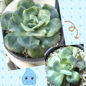 7/17に仲間入りしたセンペルビウム・アイシクルさん🌱 一番大きな方がジュレました😣💦⤵️ ベランダの床(コンクリート)に置いたから蒸れたのね…😭