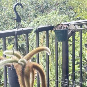 びろーーーん びろーーーーーん 普段はベランダのフェンスに引っかけているけど 先っぽが もう下につきそう=(^.^)= 連れてきた頃 チョロンとカーブしてかわいかった子は いちばん長くなり105㌢♡🤣📏