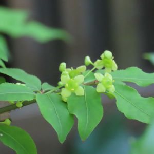 コバノズイナ「小葉の髄菜」 小さなブラシ状の小花が 開き始めました♪ 秋の紅葉も見事です💕 春先まで紅葉が楽しめます🍁 「紅葉木」とも言われるそうです♪