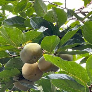 シセントキワガキ(四川常葉柿) カキノキ科カキノキ属 常緑小高木 雌雄異株 葉を落とさない柿です へたが幅広く、実に毛がありました🧡 渋味がなく甘いそうです 鳥さんに見つかっていないようです 盆栽にされたりするようです 中国では10mもの高さに成長するとか🧡🌳😊