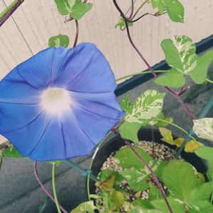 おはようございます♪(๑ᴖ◡ᴖ๑)♪ 今日の朝顔さんです٩(๑❛ᴗ❛๑)۶ 日陰と太陽を浴びている時の朝顔さんの色合いが違うのでアップしましたo(^▽^)o 太陽の光を遮ると綺麗なブルーになります🩵💙 とってもとっても不思議です♪(๑ᴖ◡ᴖ๑)♪♡♡