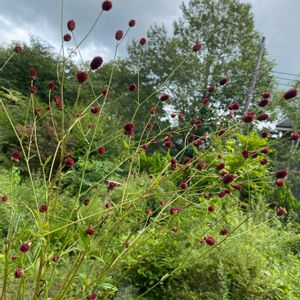 高原には、もう秋が来たのかな ワレモコウ吾亦紅(バラ科)が陽射しの中で揺れています 松虫草とのコラボで植えられてて〜これほどの量の 2花を見たのは初めてです💓