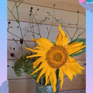 今夜のヨガ教室のお花 ひまわり🌻とワレモコウ🤎 アケボノソウ♡さん 夏と秋のコラボです٩꒰ ˘ ³˘꒱۶~♡ 🏷️月曜はビタミンカラー