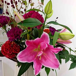 【続報】〜今週の会社のアレンジメント✨〜 昨日投稿しました「今週の会社の生け花✨」ですが、今日になり百合の蕾がガバっと開いたので続報投稿ということで🆙しました🎶 ついでにタイトルも「生け花」ではなくこれから「アレンジメント」に変えようと思います😅 昨日の投稿と見比べていただけるとわかりやすいのですが、百合が一つ開花するだけでこんなに豪華になります✨ 見てると気分までアゲアゲです⤴️🤗 恐るべし百合の存在感👏👏👏