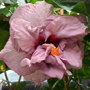 神代植物公園大温室 「ハイビスカス🌺」 名前はもしかしたら 「デニムブルー」かなぁ⁉️ このお花一寸無気味な形ですがでも良く見ると以外と 可愛いかも⁉️ 沢山綺麗なお花が咲いているのにこの子だけが変わってる感じです。