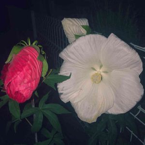 今日は仕事が遅くなり、暗がりの中、タイタンビスカスを見たらなんと、エルフちゃんがもう一輪、フレアちゃんも一輪咲こうとしてました。 ^ - ^ 明日朝が楽しみです。