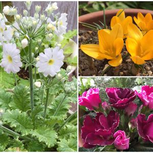 庭のお花🌼🌸🌿 零れ種の白いサクラソウ* クロッカス* プリムラジュリアン*