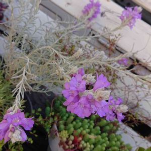 エレモフィアさん。素人の私にも花を見せてくれました!シルバーリーフに紫色、とても綺麗( ◠‿◠ ) 水やりは細口のジョウロで葉っぱに当たらないように丁寧に、日が出てる時は日当たりの良い場所に、雨の日は雨が当たらないように軒下に、大切に育てている思い入れのある子です。笑笑