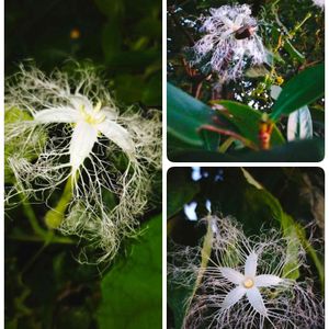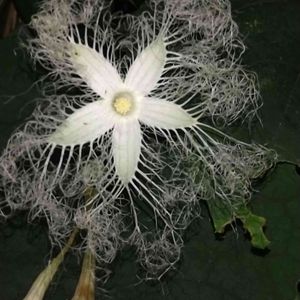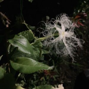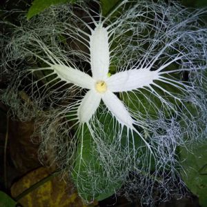 会いたかったお花「カラスウリ」(雄花)です。 暗くなってから開き 日の出の頃には 萎んでしまいます。 昼間に 萎んだ花や蕾を見つけ、夜になってから 見に行きました🎵 懐中電灯の光で (妖艶な😍)白い花が 浮かび上がっていました❗️ 感動的🤗🎶🙆 雌花は 明日 up します😁