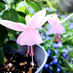 やっと新しいフクシアの花🌸が咲きました。 可愛い色です。😍