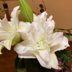 花屋さんで八重のゆりを見つけ、早速、飾りました🤗 よく観たら、花弁はちゃんときれいに重なっていました‼️